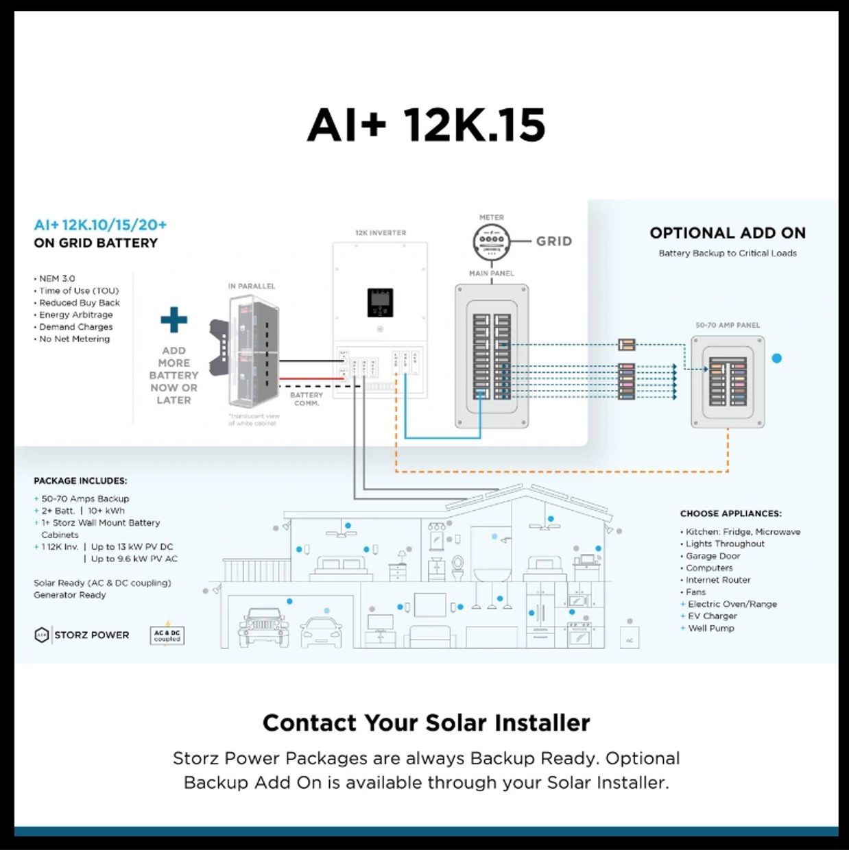 Power all the energy consuming items in the AI+ 12K.10 package plus the water heater, EV charger, and well pump.